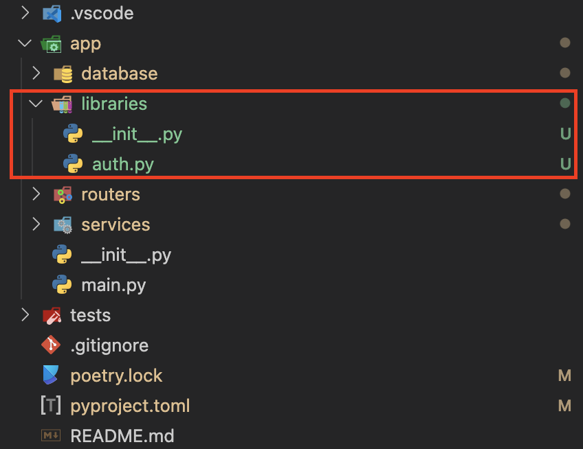이제 여기서는 회원 정보를 처리하는 방법에 대해서 정리할 것이다. 암호화 또는 인증에 관련된 내용은 두 가지 정도로 정리할 수 있을 것이다. 첫 번째로 회원의 암호를 저장할 때 일반 텍스트로 저장하는 것이 아니고 hash로 처리한 후에 저장하고 로그인할 때 이렇게 hash 처리된 값과 입력한 암호가 일치하는지 확인하는 기능이 필요하다. 두 번째, 인증이 성공한 이후에 해당 사용자는 인증된 사용자임을 파악하기 위해서 토큰을 발생하고 이 토큰이 있는 요청에 대해서만 처리해줄 것이다. 이를 위해서 별도의 파일로 분리하여서 관련 코드를 정의하도록 하겠다. 인증 인증 관련 내용에 대한 파일은 app 디렉토리 밑에 libraries 디렉토리를 생성하고 auth.py 파일을 생성하여 해당 파일에서 정리하도록 할 것이..